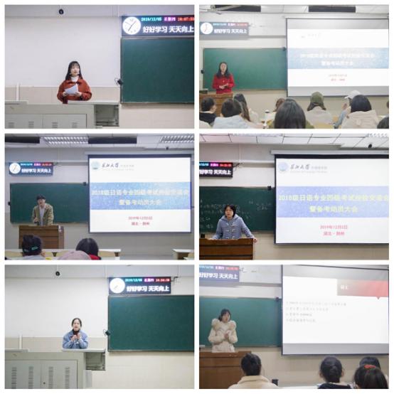 在英语专四分享会上,两位优秀员工代表罗理非和罗明慧同学分别从题型分析、英语词汇、英语听力及阅读部分的考点和难点及考试的注意事项等方面进行了介绍。分享了自己的备考经验和感受,并给即将进入备考阶段的18级全体员工在英语四级考试怎样学习等问题上给出了各自的意见。罗理非同学分享了她的个人看法,她表示态度是否端正对专四能否通过很关键,每个同学都应该沉下心来好好准备复习,单词是基础,每天都应该有计划的背记单词,还有要认真研究专四相关的真题,慢慢进入考试状态;而罗明慧同学则主要以外刊为着眼点,分享了自己再看外刊方面的心得体会以及外刊对备考专四的意义。在日语专四分享会上,大三学长向同学们介绍了日语专业四级的经验知识,他着重强调要注重考前备考,在时间紧任务重的情况下要注重基础把握好新编日语的课程。“见贤思齐焉,见不贤而内自省也”吸取前者的教训,并将前者的长处发扬光大。