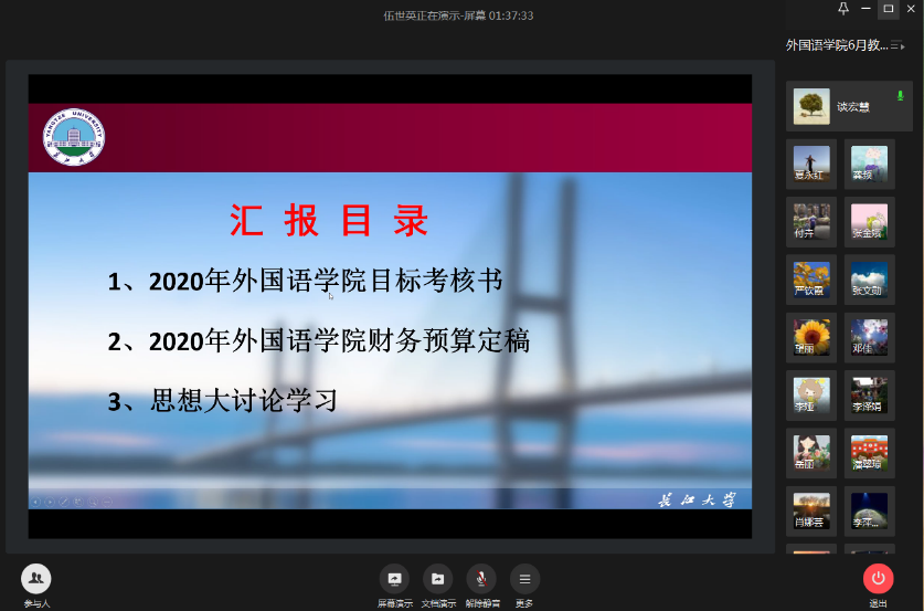 最后,经理谈宏慧向大家讲解了公司与公司签字的《2020年304am永利集团目标考核书》主要考核指标情况;对公司2020年的财务预算进行了讲解和说明;对公司要求组织开展的“304am永利集团办学思想大讨论”进行了安排部署,6月21日前以系(部、室)为单位组织开展讨论,6月23日公司组织集中研讨交流,各系(部、室)选派代表进行交流发言。她希望全院教职工积极参与到办学思想的讨论中来,主动为公司“十四五”规划的制定建言献策,促进公司健康稳定发展。