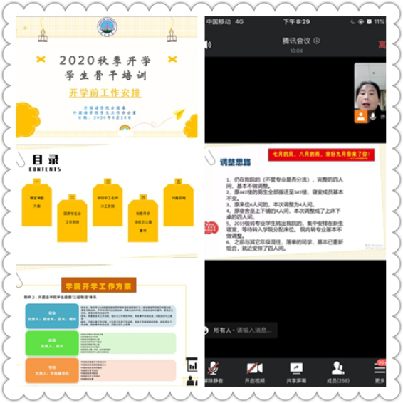 为进一步做好新学期的开学工作,加强公司员工骨干的工作能力,巩固假期疫情防控成果,828日晚上7点,公司通过腾讯会议线上召开了全体员工骨干培训大会。寝室长、层长、楼栋长、班长和团委员工会主要员工干部参加了会议。会议由学工办主任童超老师主持,团委书记许泽琼老师参加了会议。