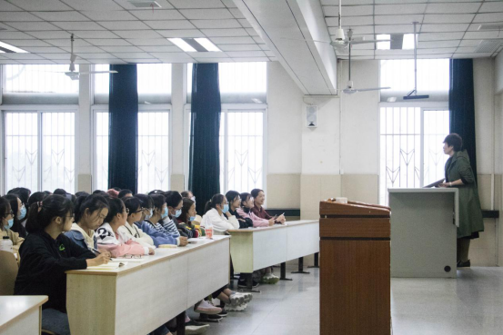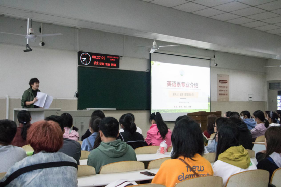 讲座伊始,王娟老师首先对英语系八个班的同学表示热烈的欢迎,并对他们今后的学习生活树立了新的目标和方向。王老师表示,大学英语专业的学习与小学、初中、高中的英语课有本质的不同,需要更系统更详细地学习英语的基础理论与知识,并且要着重培养听、说、读、写的技能。王老师还从办学历史和团队力量的方面着重介绍了英语专业的基本情况,并且说明了英翻和英教两个专业方向的实习和就业问题,让与会的大一新生们对自己的专业以及未来想要选择的方向有了深入的理解和把握。