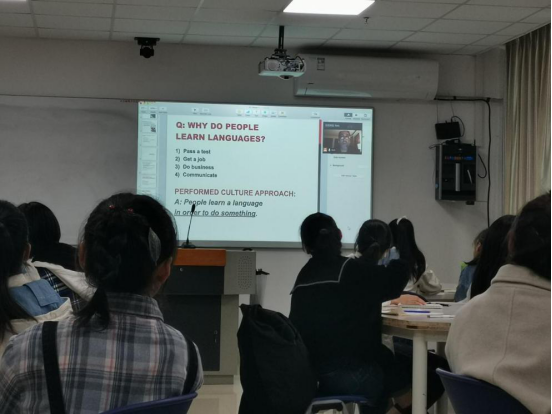 师生间的互动交流结束后,Bob老师继续给员工们上课,同学们在外教老师关于文化重要性的讲解中度过。