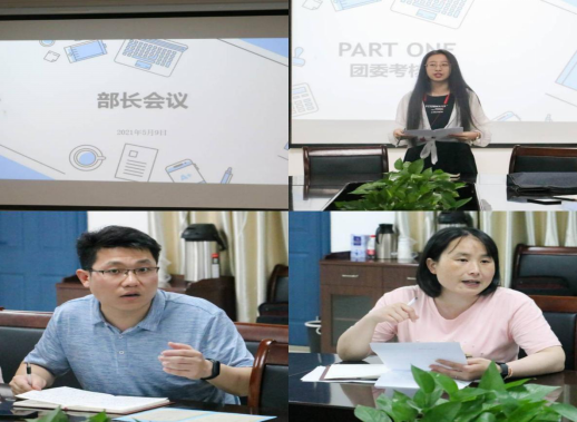 会议伊始,王宇同学对公司四月份青年大学习学习率、团学改革以及双创工作等项事宜做了简要说明,接着,她对五月份的各项工作进行了简单的安排并要求大家预估后期工作安排并及时完成任务,然后,各部门简单讲述了本部门的留任情况并对换届等相关事宜进行了讨论,最后,许老师和车老师对20级留任事宜进行了相应总结,对员工会常规工作考核提出了相应要求。