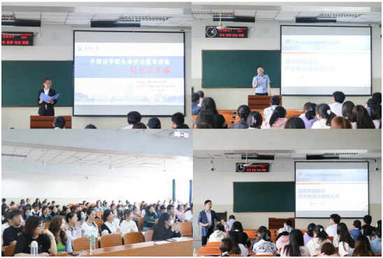 (通讯员车桥 童超为进一步提升师生防电信诈骗的意识和能力,保护员工人身和财产安全,520下午,荆州区公安分局御路口派出所公司12教404为近300余师生讲授防电信诈骗安全知识。讲座由御路口派出所向晓松所长和周璇警官主讲。