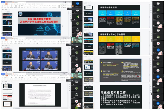 8月3日上午10点,公司通过腾讯线上会议召开班主任会议,党委副书记程坤就当前的疫情防控形势与员工管理要求向班主任老师做了详细说明,同时布置了当天的信息摸排和班会任务。