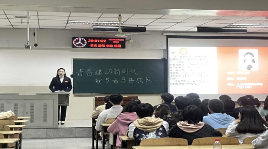 主讲人首先向在场同学介绍了青马班的发展历史以及青马班的培养目标,班级学员的主要选拔条件和培训课程等基本情况,重点开拓学员的综合素质能力,培养出既能着眼当前,又能够面向未来的青年马克思主义者,通过两年马克思主义系列主题课程的学习与实践,让学员们成长为思想上有信仰、学习上有进步、同学中有威信、能力上有提高的青年老员工精英。