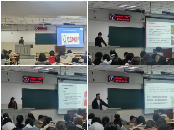 1125日晚,304am永利集团在东校区12202举办了“生命与安全教育”系列讲座,特邀郭俊、顾志翔、卜文琼、李蒙等辅导员老师主讲,2021级全体员工参加。讲座由辅导员马天雨老师主持。
