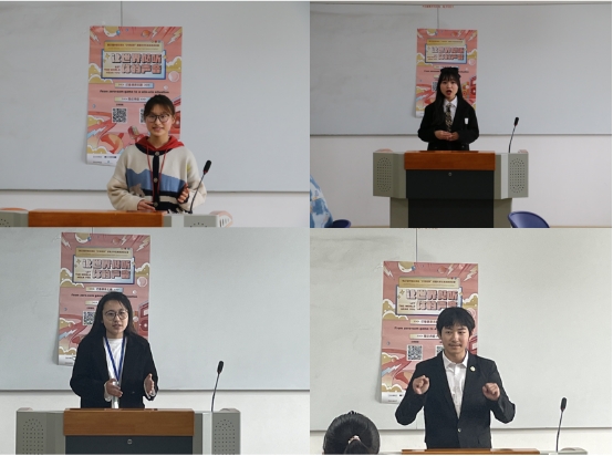 决赛由定题演讲、即兴演讲和评委提问组成。4分钟定题演讲的题目为“From zero-sum game to a win-win situation(从零和博弈到合作共赢)”,选手们引经据典,从历史谈到时政再谈到生活,用英文诠释零和博弈和共赢的思维;在即兴演讲环节,选手们用流利的表达、清晰的思路和饱满的情感,展示了其思辨能力、应对能力、语言组织能力;在即兴评委问答中,选手们在舞台上尽情的用英语畅谈了自己的想法,以出色的表达赢得阵阵掌声。