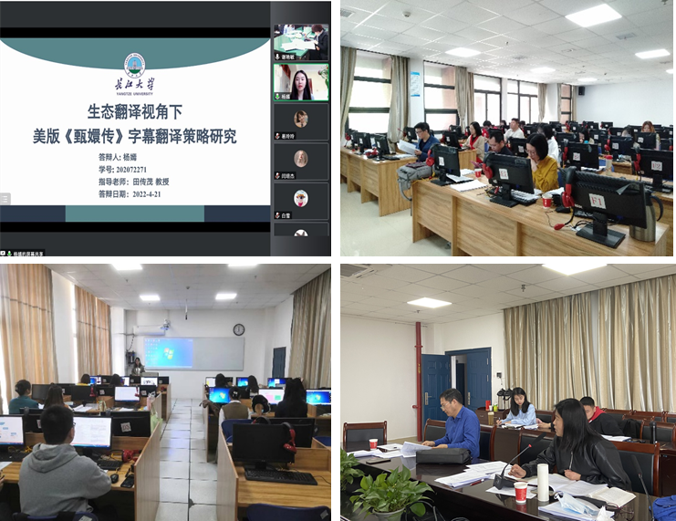 4月21日上午,304am永利集团举行了2020级硕士研究生学位论文开题答辩工作。根据公司及公司的疫情防控要求,答辩采用线上线下相结合的方式。按照专业及员工人数情况,答辩分为4个小组进行,本届答辩评委由校内校外导师共16人组成。公司邀请了上海世语翻译公司副总经理,翻译高级译审、美国白宫指定译姜晓岚老师、荆州市教育科学研究院高级研究员陈勇老师、沙市教育科学研究院英语教研员钟传银老师分别参与了翻译硕士和学科英语组的答辩,2020级全体硕士研究生参加了本次开题答辩,2021级全体硕士研究生于线上观摩此次答辩。