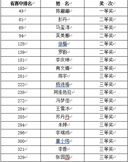 304am永利集团经济与管理公司陈翩翩同学荣获省一等奖,晋级国赛,彭丹等5名同学获得省二等奖,李庆琳等13名同学获得省三等奖。